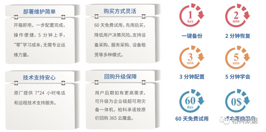 “365云魔盒”为虚拟化及物理机平台提供数据安全保障,为财务、OA、ERP等系统保驾护航。部署与维护方便且极具性价比,中小型业务场景容灾保护的最佳选择。